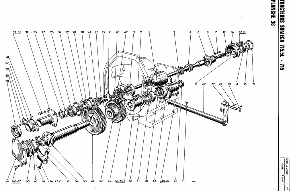 Précisions: en fait ce sont les mêmes ref, tu as changé les rouges (30 joint papier 44004477;31 joint papier 44004478;35 joint spi 44008713 -50x65x10) mais tu n'as pas changé le vert 22 joint spi 44009593 -35x54x7; remarque 42 la bague "calcar" douille 44002563.