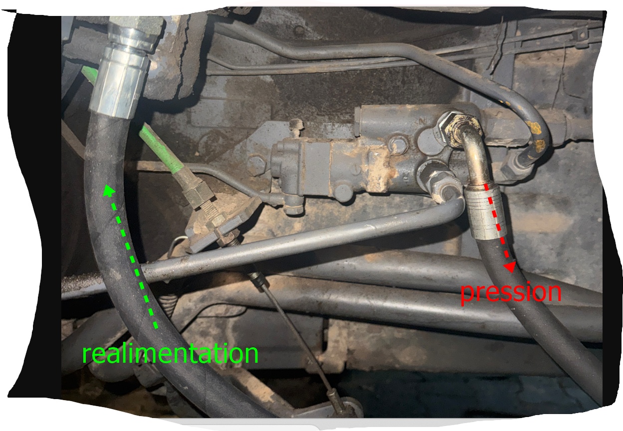 pourquoi a tu mis un T a la sortie d'huile sur le distributeur de frein de remorque sur le flexible qui va alimenté le distributeur du chargeur ???