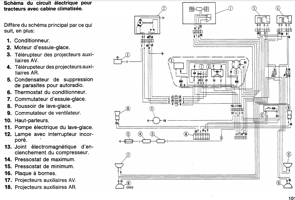 Bonjour à tous, j’ai des problèmes avec mes phares de travail sur mon 100-90. J’ai voulu changer mes relais et mon bouton interrupteur pour être tranquille car ils déconné de temps à autre mais le problème c’est qu’il reste allumer en continu même les veilleuses éteinte. Quelqu’un pourrai m’indiquer les branchement sur les relais et l’interrupteur( avec couleur si possible ) s’il vous plait ?