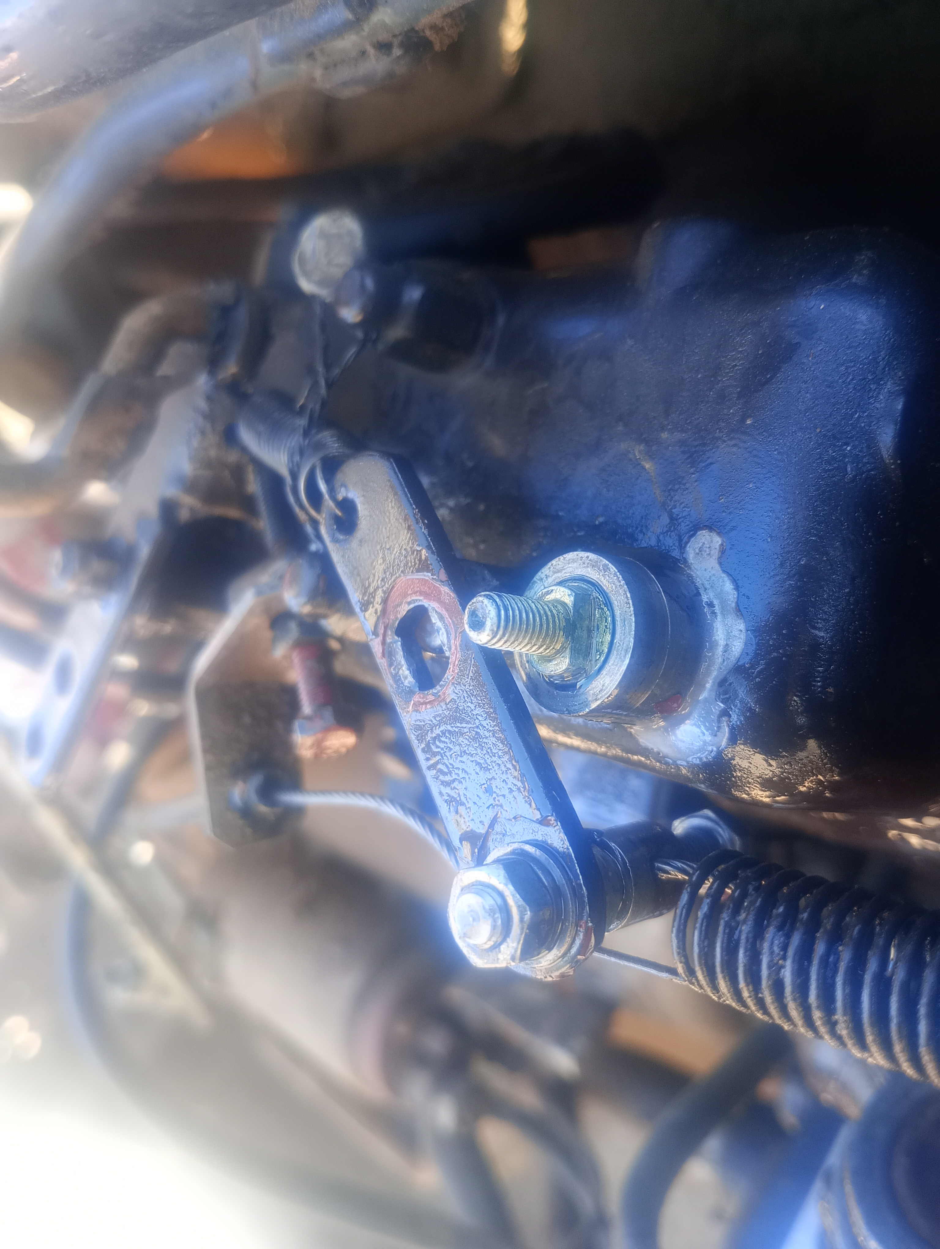 En insistant un peu, l'un d'eux me dit : " démontes la ou ca fuit et regarde le joint" Simple en apparence. Du coup je demonte le boulon de droite, celui de la coupure moteur cela n'a pas l'air trop compliqué.