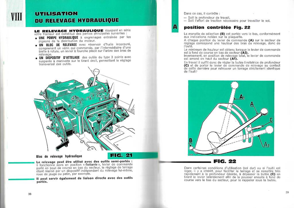 Ok, donc la pompe hydraulique, étant actionnée par les pignons de la distribution du moteur, ca veut dire que le relevage ne peut pas fonctionner moteur éteint ! Ce qui explique que ça fasse rien pour le moment !
