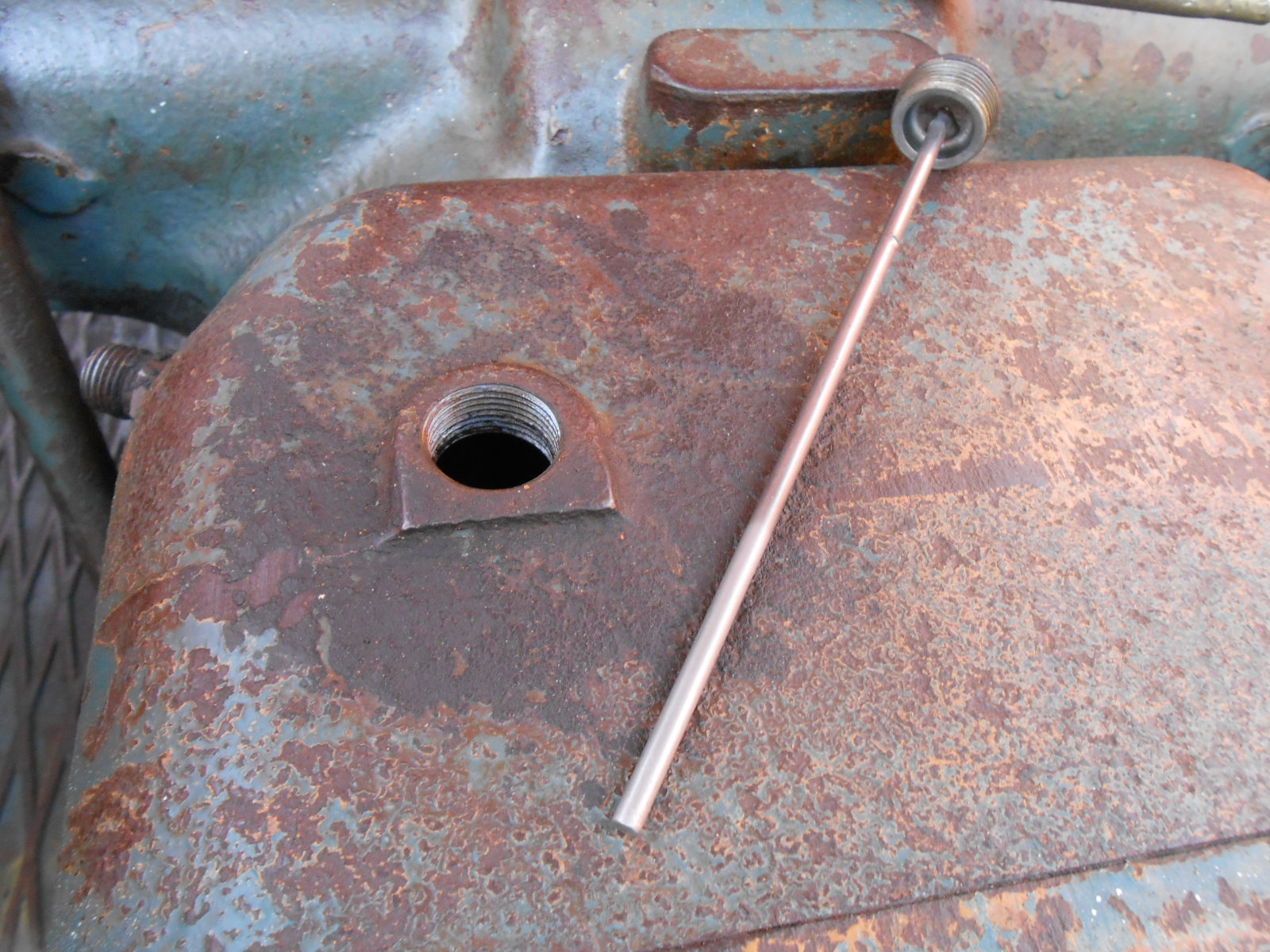La jauge... Normal la vis soit ronde ? Ou écrou foiré ? La jauge séche, de chez séche L'intérieur du reserervoir de relevage, on en voit une petite couche brillante dans le fond Le document d'entretien préconise de la Shell X 100, ou de la 10w30. Ailleurs, il est préconisé, si reservoir indépendant de la HV46.