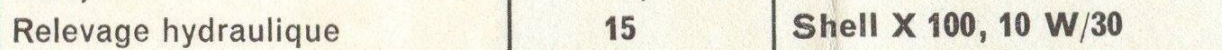 - Concernant l'huile de relevage, j'ai préconisé : Shell X 100, ou 10W30, et encore ailleurs HV46...