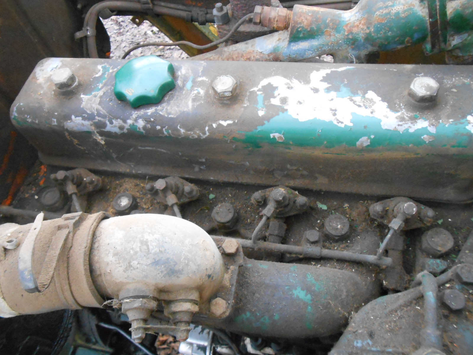 Donc le haut du moteur (cache culbuteur) avec collecteur d'échappement et l'emplacement du thermostat. A noter que contrairement au 612, le 45TP a un bouchon sur le cache culbuteur avec reniflard.