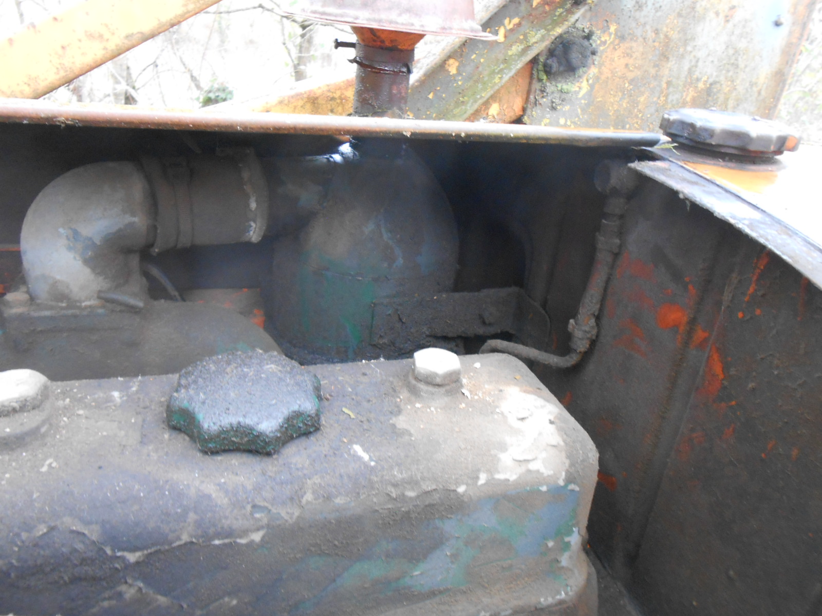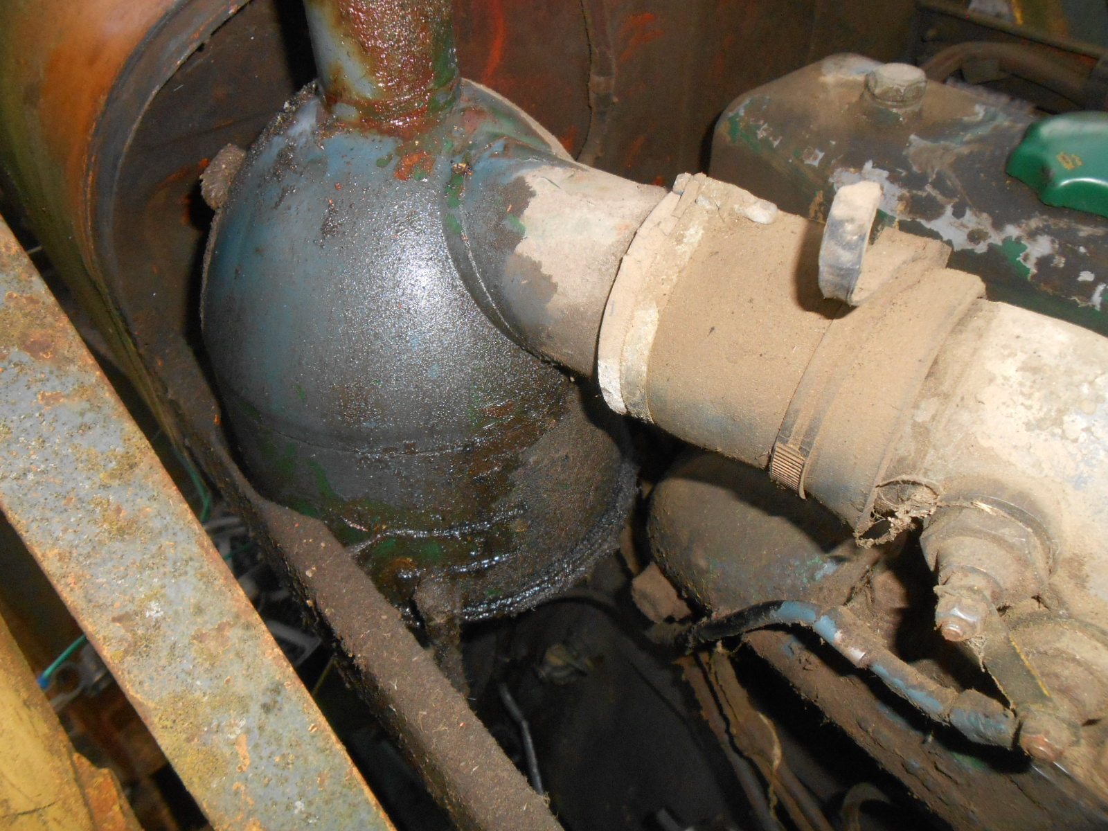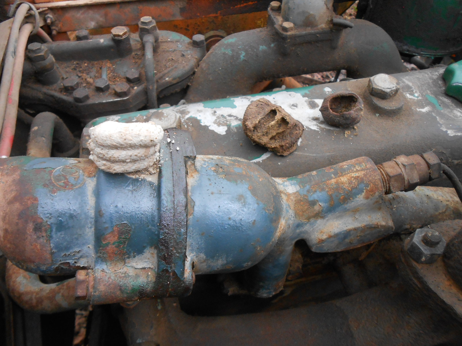 Donc le haut du moteur (cache culbuteur) avec collecteur d'échappement et l'emplacement du thermostat. A noter que contrairement au 612, le 45TP a un bouchon sur le cache culbuteur avec reniflard.