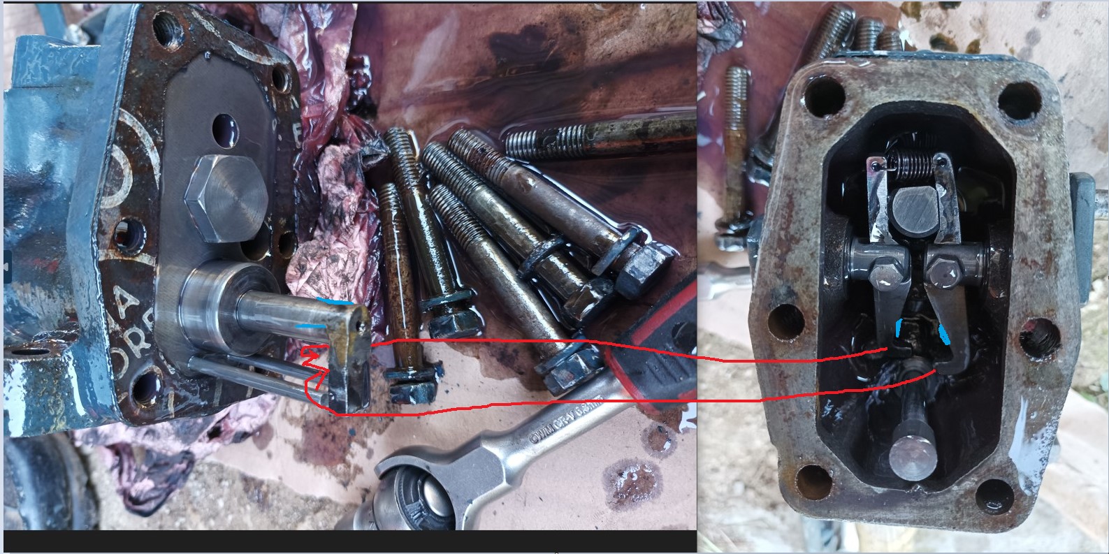 Brasure réalisé, ça change de la réparation des anciens propriétaires, pour le moment plus de fuite, j'ai aussi pu changer les deux olives pour la fuite des tuyaux dans le réservoir hydraulique, olive en laiton pour tube diamètre 12, j'ai changé les joints spy des raccords pour la pompe hydraulique, j'ai juste un tout petit peu d'huile qui coule par moment sur la modification du distributeur, les joints spy doivent laisser un peu d'huile passer de temps en temps, et les bras de 3 points se lève tout seul quand j'allume le moteur ... Il faudrait que je démonte l'arrière du distributeur pour vérifier si j'ai bien tout remonté ..... ( pour le remontage de l'arrière du distributeur si vous avez une idée de comment bien installer les pièces dans le distributeur, n'hésitez pas a me donner vos conseils). Merci