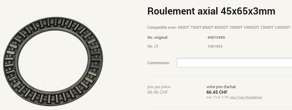 Bonjours, j'ai démonté l'axe, ce n'est pas les aiguilles du roulement 44013888, les aiguilles sont plus longues et tout le monde est en place. Je vous joint une photo de la rondelle que j'ai trouvé et les aiguilles retrouvées dans l'huile rentrent parfaitement dans les trous. Je me demande si ce n'est pas la réf 44013495.