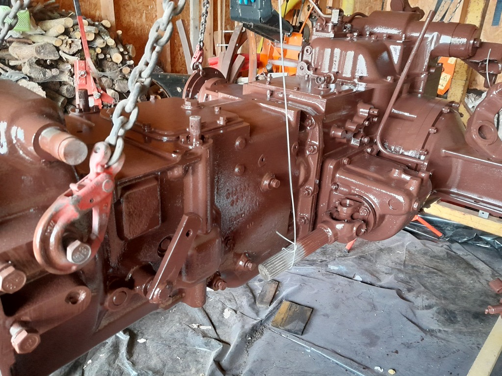 je commence à démonter le pont avant pour pouvoir peindre à l’intérieur des articulés. J'ai peut être une petite fuite au niveau des cardans sur la partie articulée, à voir après démontage. Pour sortir la couronne dentelée, j'ai vu sur la doc qu'il fallait 2 boulons de 10.