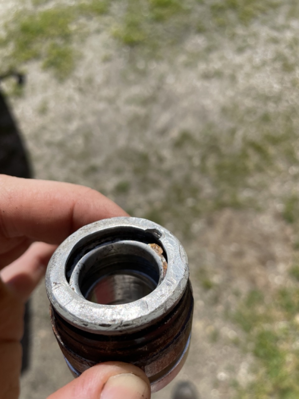 Seule chose, la tête ne voulait pas s'enfoncer (comme l'autre). J'y suis allé avec un chasse goupille (pour pas trop l'abimer), or évidement il y a un morceau qui a cassé.
