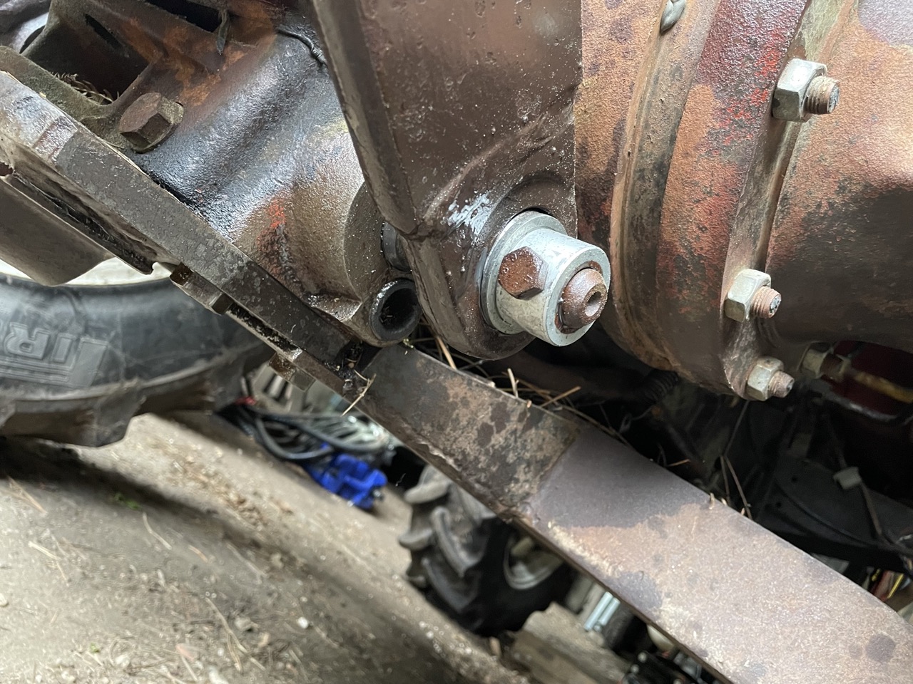 Pour l'instant ca fait du goutte à goutte, je contrôle la fuite avec un bac, ca a l'air de se calmer un peu. J'ai besoin du tracteur encore en ce moment, donc je fais gaffe au niveau du pont AR. Et quand je vais avoir le temps, je vais la démonter pour voir de plus prés.