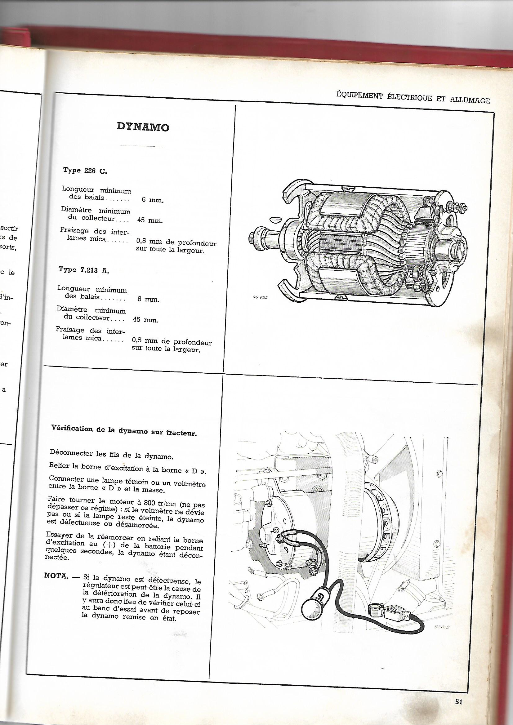 Si non fonctionnement, changer (ou opter pour un alternateur , ce serait mieux techniquement, mais tu le feras pas car il faut respecter les valeurs d'origine de l'époque).