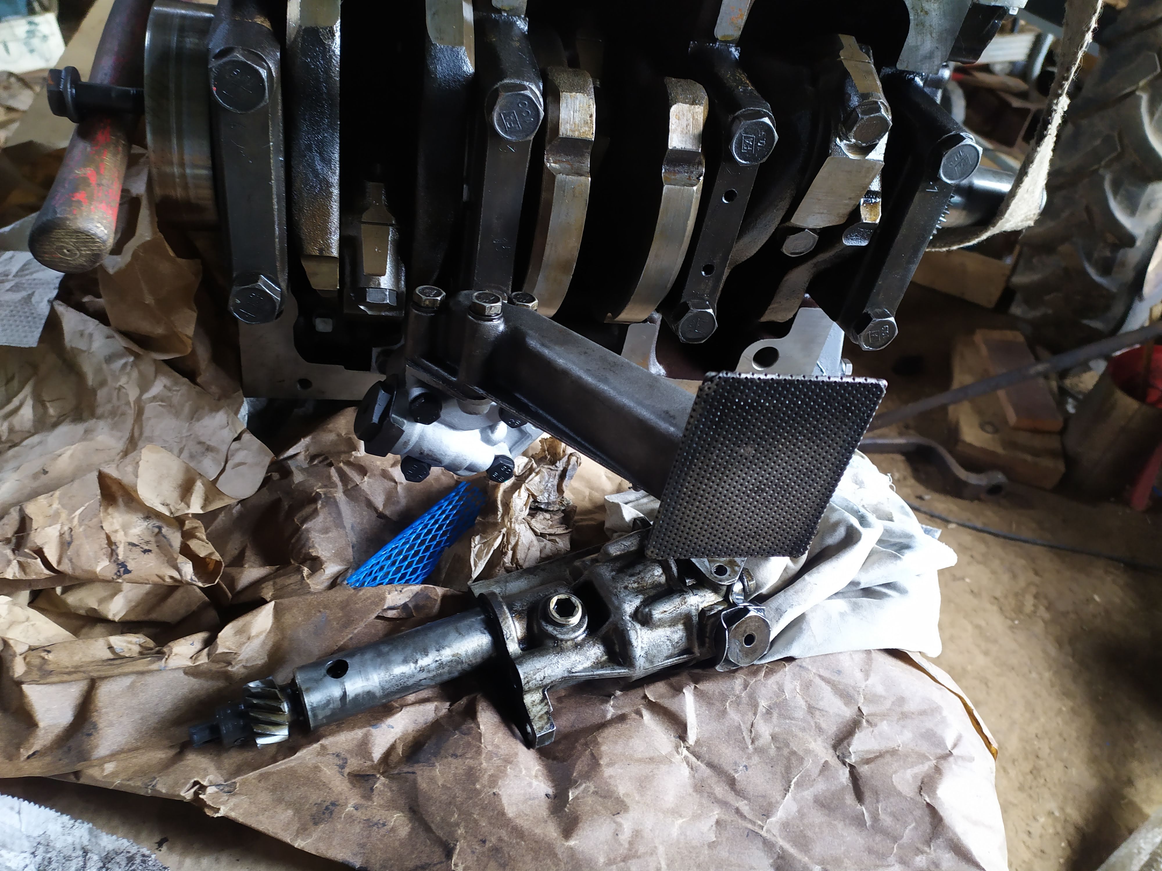 Les pistons sont sortis mais le moyeu derrière la poulie de vilebrequin était difficile à sortir .