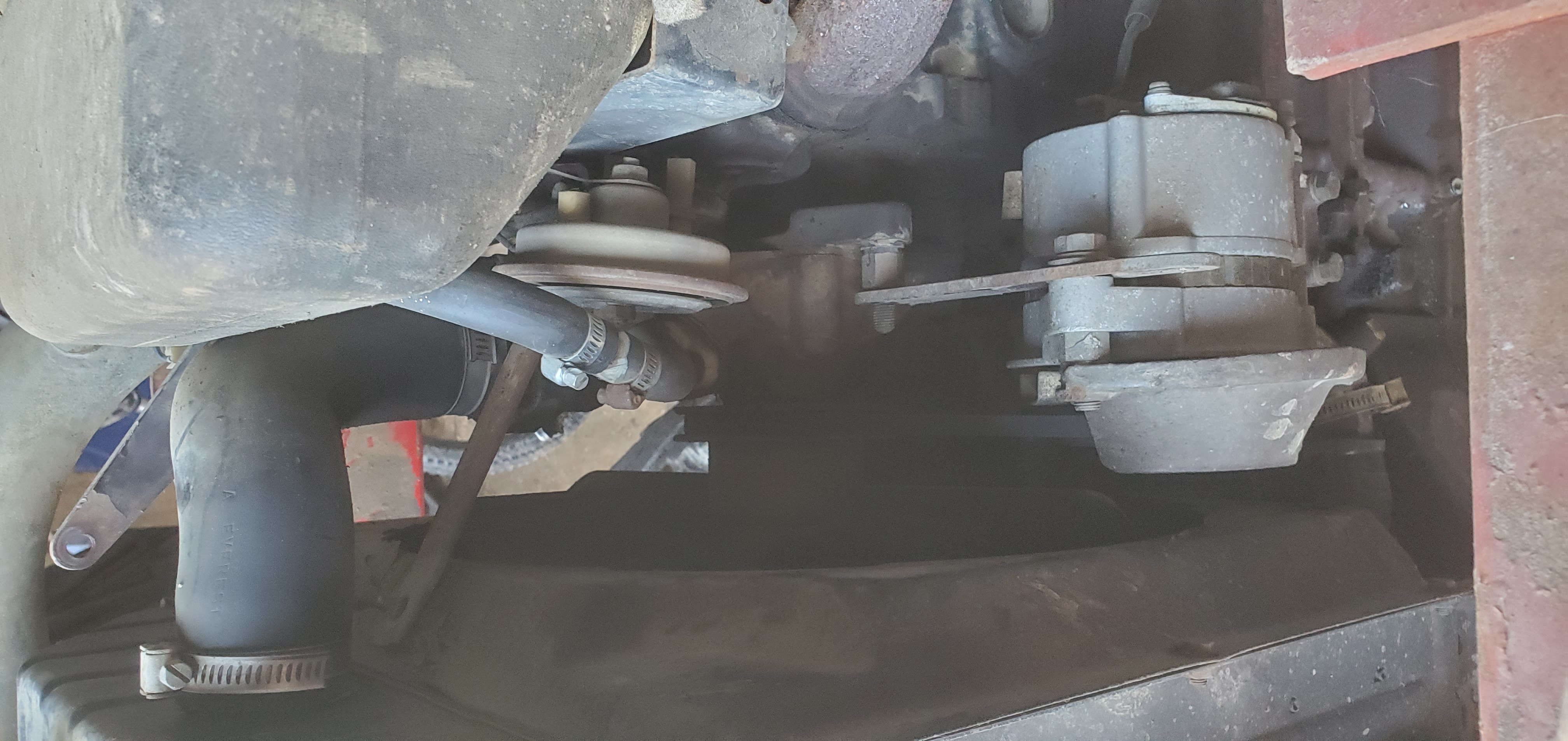 Bon ça c'est fait ! Un peu de boue dans la durite supérieure du radiateur...