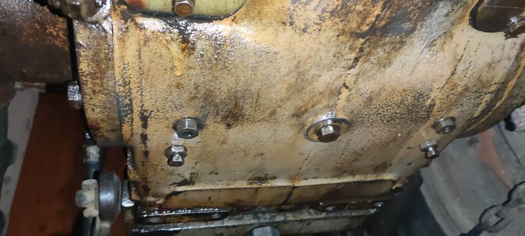 Du coup mon soucis c'est que mon huile hydraulique fuit un peu sous le tracteur, j'ai réussi à voir d'où ça vient je pense, comme vous le voyez sur la photo, le boulon au premier plan a comme un emplacement pour mettre une vis dedans sauf que j'en ai pas.