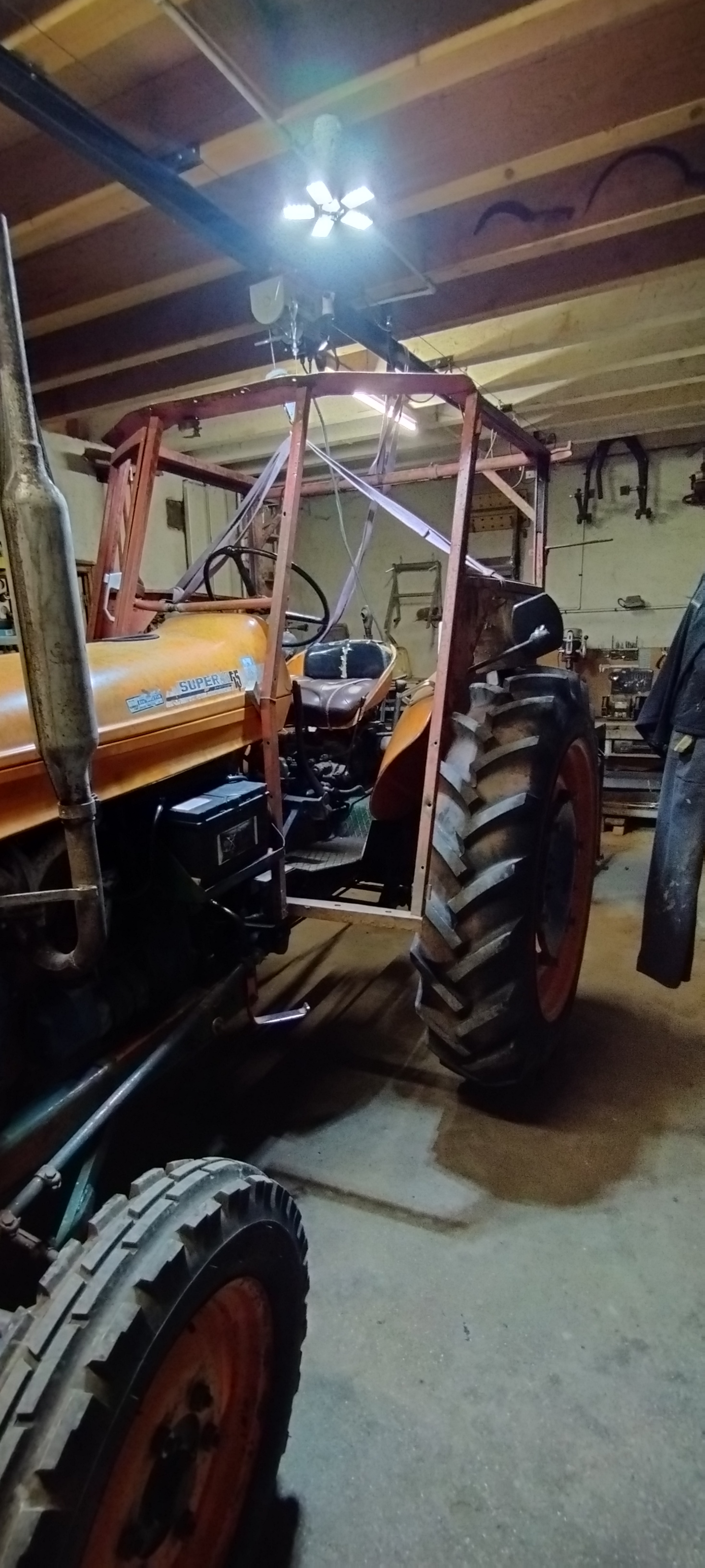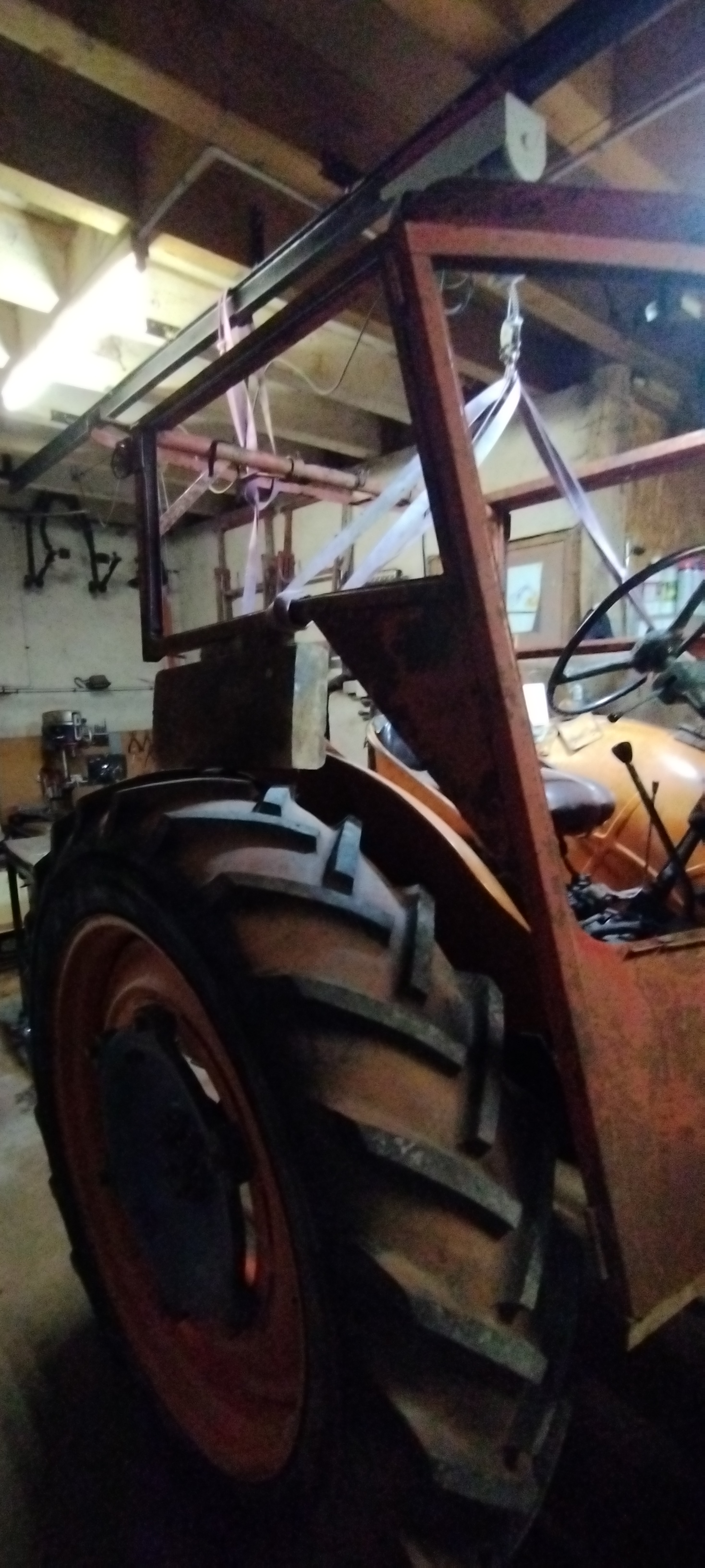 C'est une cabine Démarais prévue pour les ailes plates et arrondies donc tu es obligé de faire un portique à l'arrière pris sur les trompettes et ailes. Merci pour les photos de ton beau tracteur.