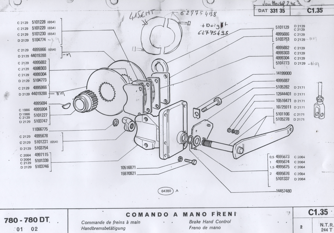 JJ va te le dire. Une fois enlevé les disques ( coupés au chalumeau), assembler le demi-disque à l'autre avec vis BTR. On mettra 2 plaquettes ( la ref actuelle semble 5158120 au lieu de 5104773) au lieu de 3: Il faut meuler l'angle haut droit de la pièce arrière 4995686, meuler le sommet du doigt 5101231( on peut le changer, mais il coute assez cher), changer le joint 14457480, l'arbre 5101106 va être un peu décalé.