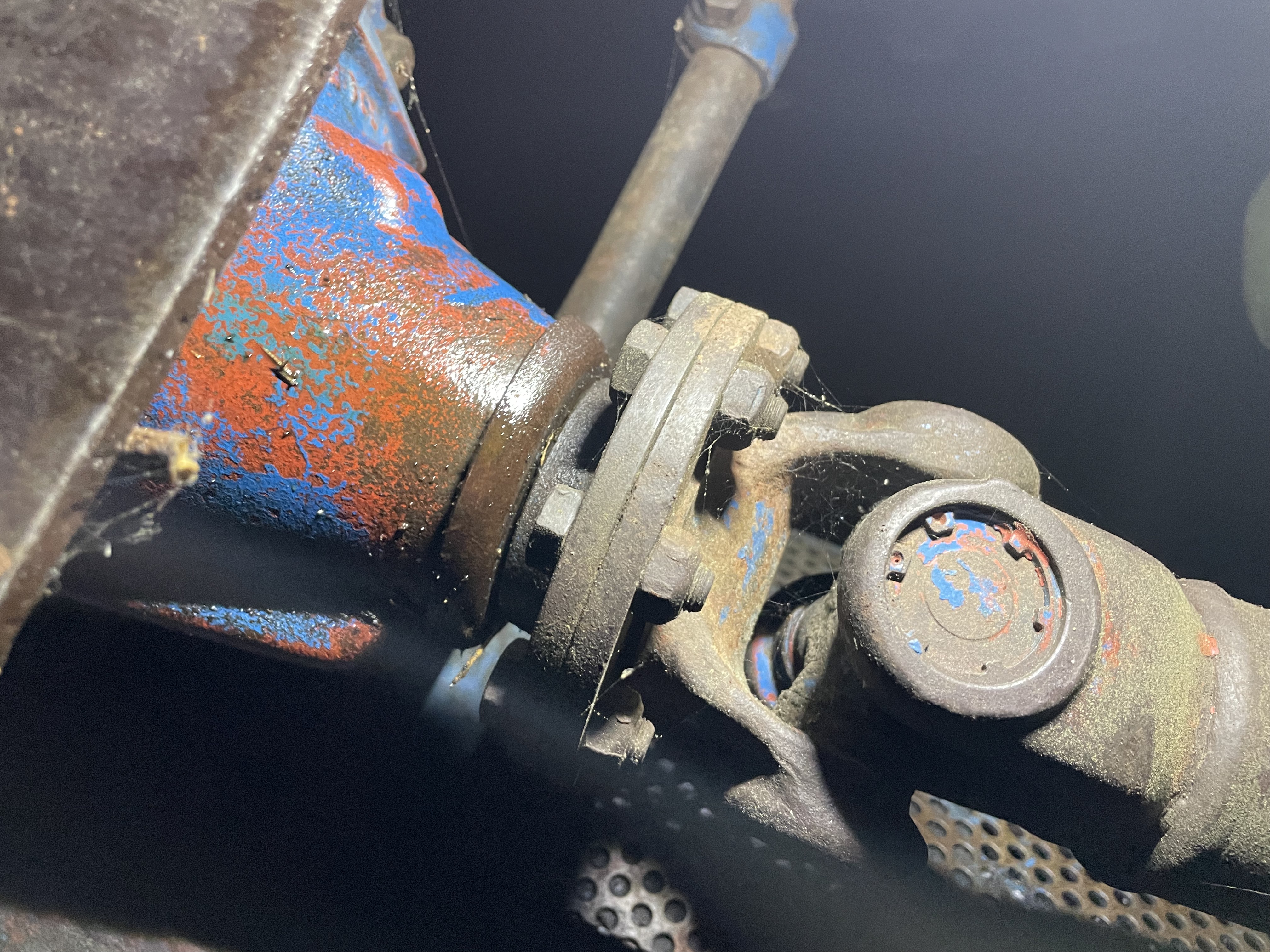 Je m'apercois sur le même Ford, que j'ai une fuite bien prononcée au niveau du cardan sur le pont av (ci joint la photo). Faut que je fasse le niveau car je pense qu'il a bien perdu .