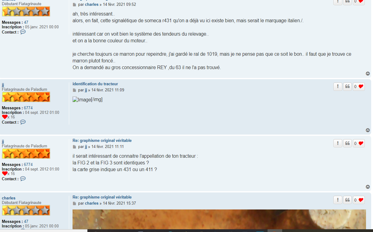 oui et non ,il y a eu un sujet lié au 431 ,concernant les références peinture ,ce sujet a été ouvert par Charles et complété en documentation par jj ,il parlait aussi des différents marquages au fil du temps ,des différences entre les 431 someca et fiat.