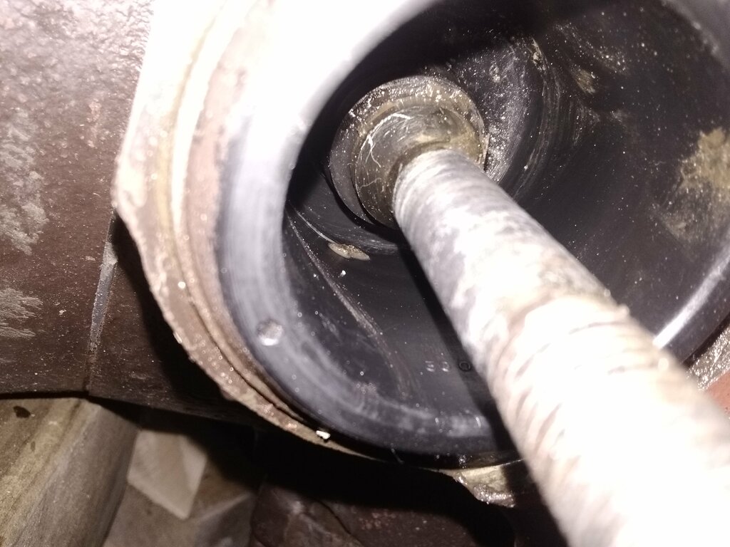 De l'autre cote (le gauche) on dirait que le soufflet a deja etait changé ! car l'etancheité autour de la tige de frein est dessuite au bord serré par un rilsan ! Etrange non ?