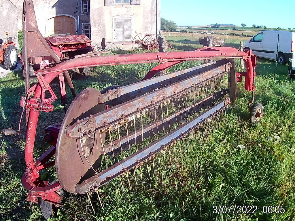 On avait la même faneuse et une faucheuse tractée Deering avec les roues cramponnées tout en fer.