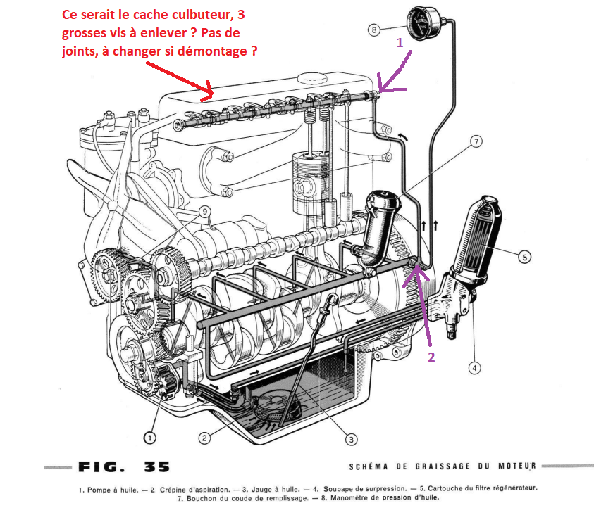 Donc, si il y a une vis, vers le haut du moteur, cache-culbuteur, qui permettrait de s'assurer que la lubrification est bien assurée ?