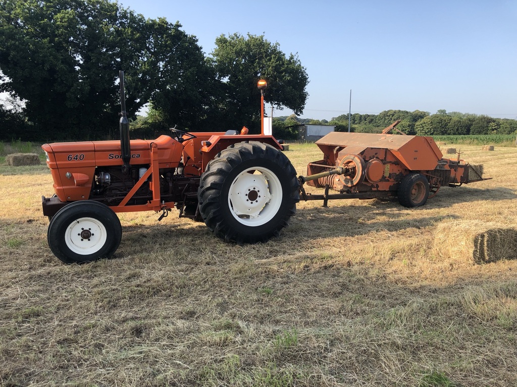 J'ai trouvé une sorte de Round Balleuse Someca a un agriculteur vers chez moi, mais qui est quand même assez ancienne et qui fait des mottes rectangulaires, enfin parallélépipédique zt sans plastique autour...