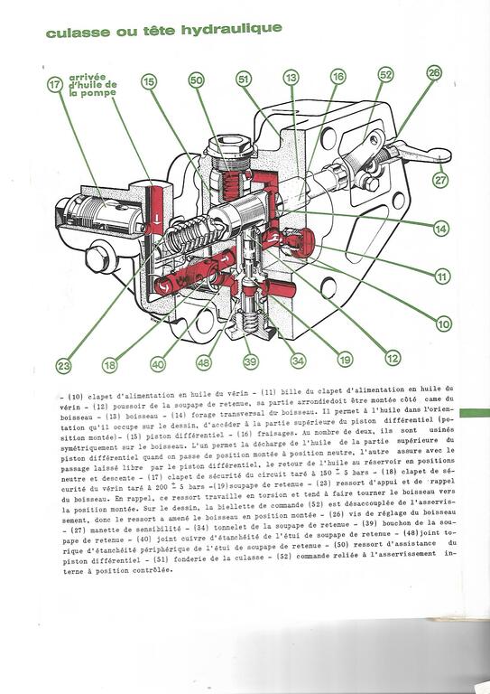 pour la descente du relevage moteur arreter tu regardes si en enlevant le bouchon 50 le clapet 15