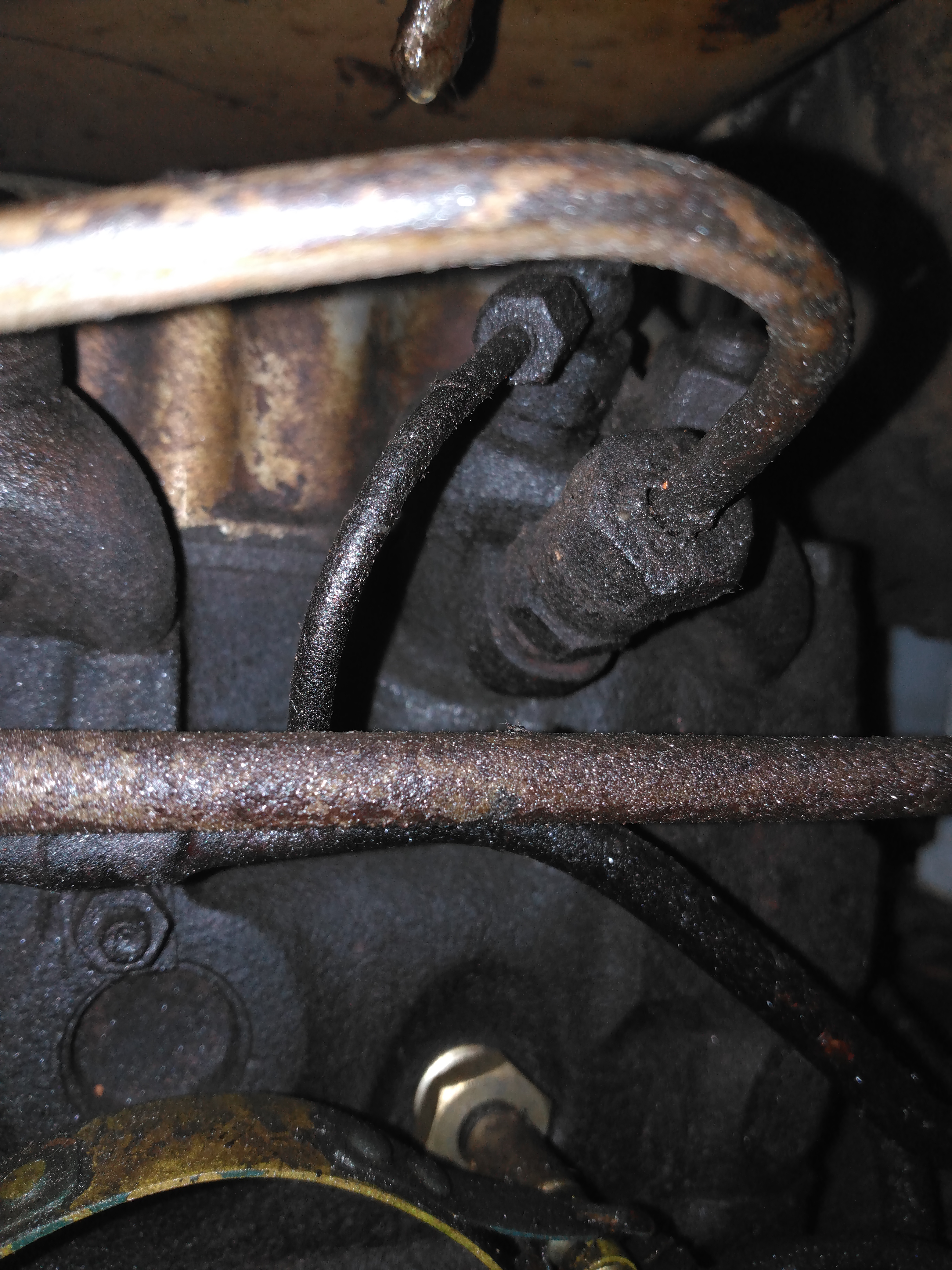 La fuite se trouve après l arrivé du tuyau d arrivé en premier plan sur le pas de vis de l injecteur