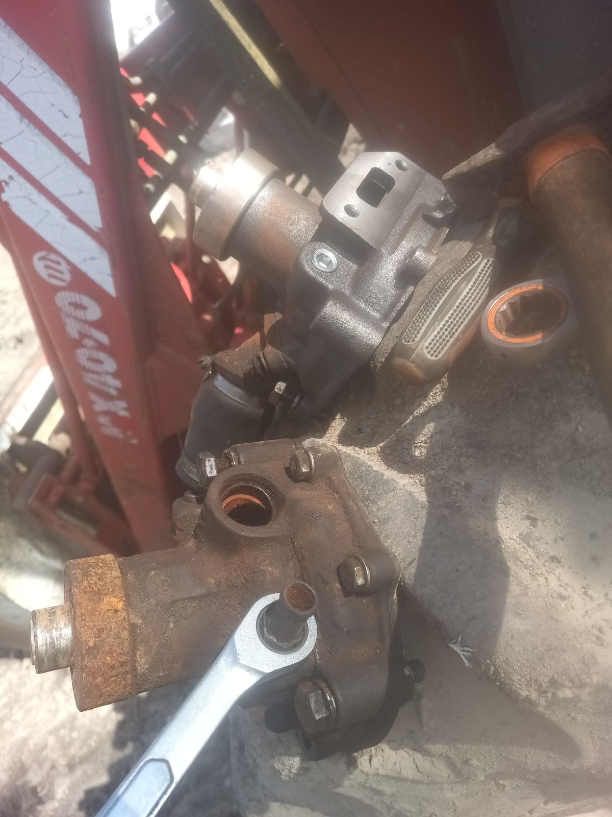 Selon le catalogue une seule pompe est montée. Il m'envoie les photos ça semble correspondre. Pour ne pas immobiliser le tracteur au cas ou j'ai une urgence je décide de me rendre là-bas acheter la pompe et revenir en laissant la pompe en place.