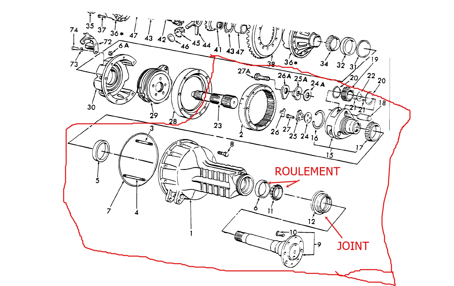 En attendant de faire les gros travaux sur la trompette, autre question sur le pont av droit. Ça fait un moment que ca fuit, j'ai mis ca de coté, mais si je fais des travaux sur le tracteur, autant tout faire d'un coup ...