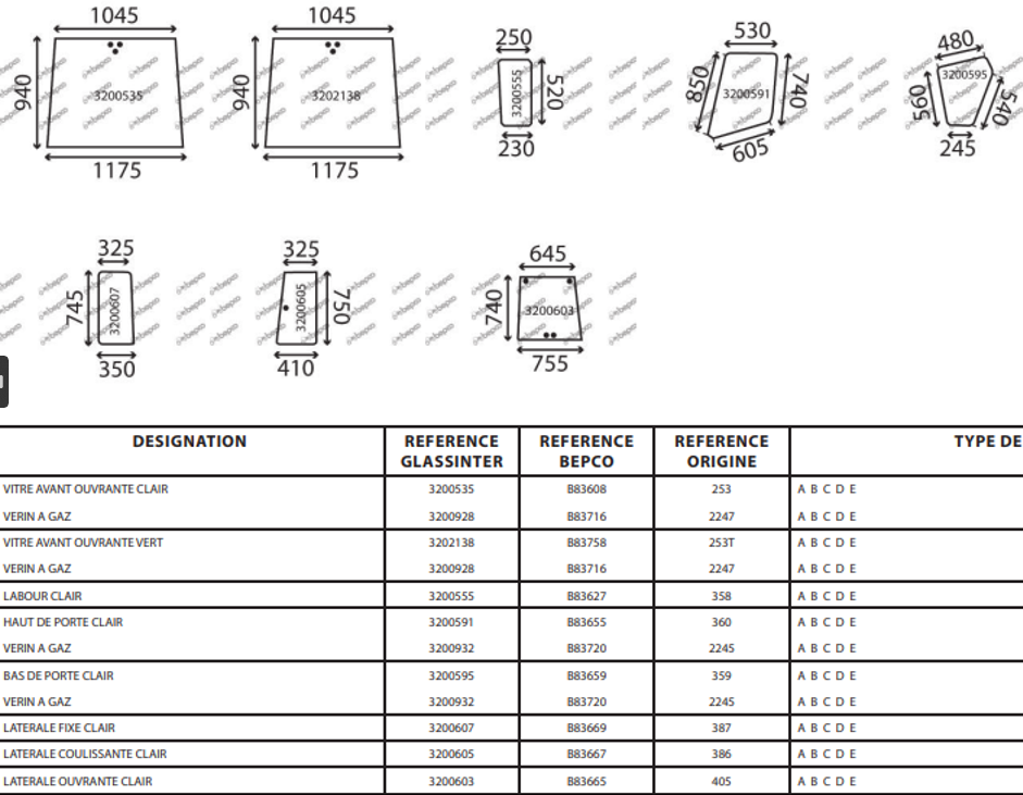 Voici les références des vitres et vérins de la série LS DEMARAIS pour la série 80 :