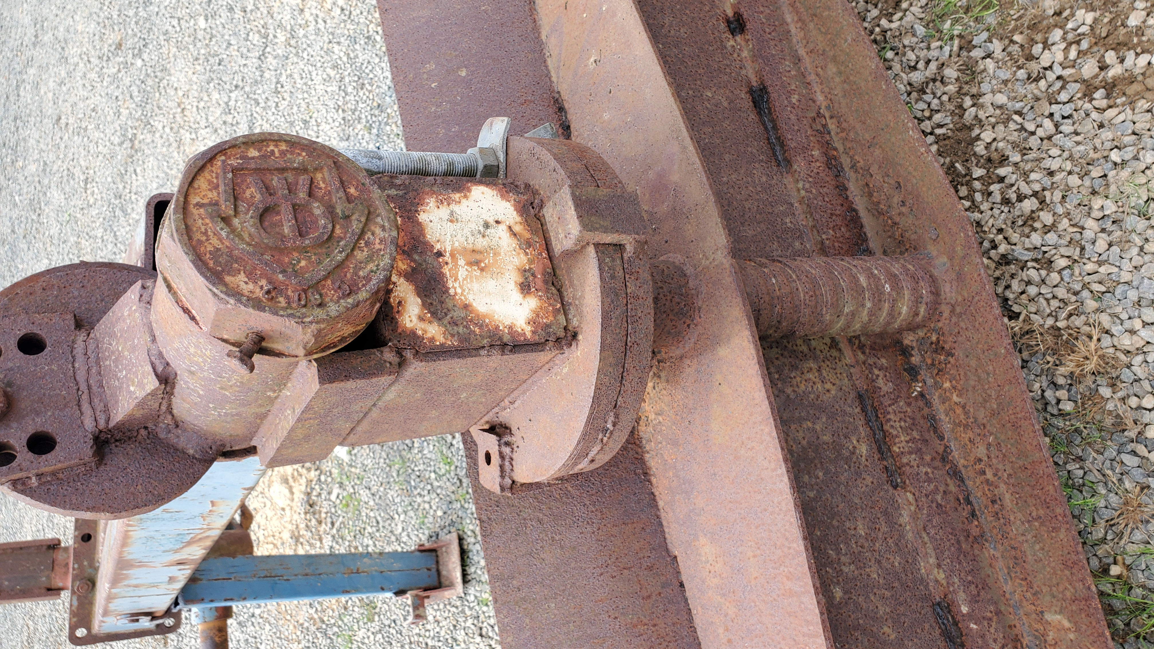 Je mets une photo de l'ensemble, en ce moment je pense qu'il s'agit d'une charrue sur laquelle a été soudé ce qui ressemble fortement à un pressoir (et dont la vis supporte la lame). Mais rien de sûr.